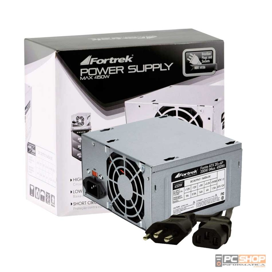 Fonte de energia para computadores ATX 20+4 Pinos 200W Reais com picos de potência de até 450W (máximo).